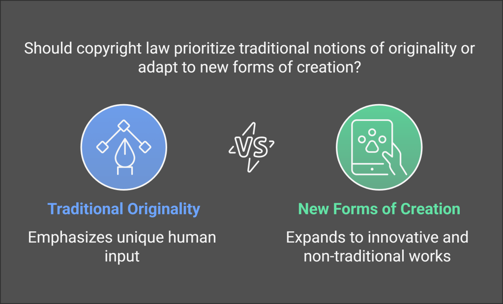 Existing laws are faced with their most interesting challenge yet. Traditional IP laws were designed to protect human authors. It was inconceivable that one day AI could do in matter of seconds what people would take days, weeks, and sometimes months to produce. How does the law adapt to this shift? It is foolish to try and ignore the reality of a world of creativity that will never be the same again. AI-generated content is already abundant on the internet, and platforms like YouTube have established regulatory frameworks rather than completely banning AI-generated content. If it is not already obvious, IP laws must evolve to embrace AI generated content.