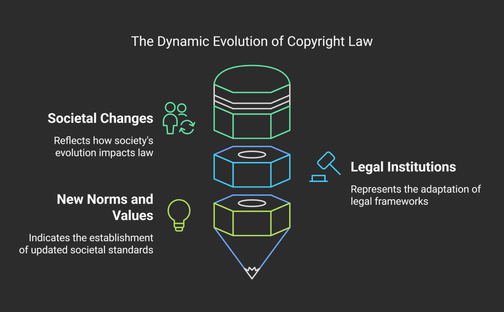 The former Attorney General of the Kingdom of Lesotho, Mr. Ts’okolo Makhethe K.C., argues that society is dynamic and continuously evolves in response to ongoing changes. In essence, for every time period, these societal changes influenced the evolution of existing legal institutions, which in turn established new norms and values aligned with the emerging society of that period. It is for this reason that copyright law must adapt to this change.
