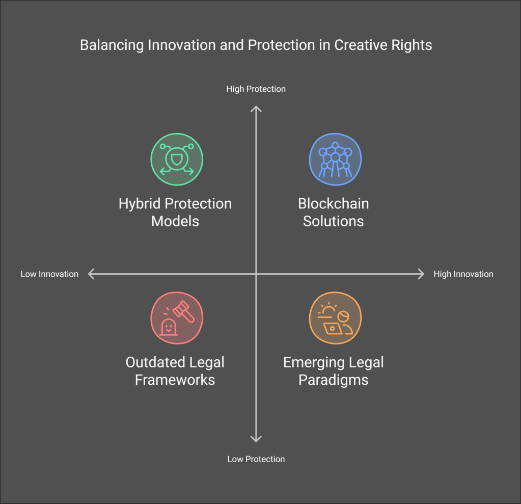 As we stand at this technological crossroads, the future of creative rights demands a delicate balance between fostering innovation and protecting human creativity. While blockchain technology and hybrid protection models offer promising solutions, the true challenge lies in crafting flexible legal frameworks that can evolve alongside AI capabilities. The next decade will likely see the emergence of new legal paradigms that recognize both human and artificial contributions to creative works, fundamentally reshaping our understanding of originality and authorship in the digital age.