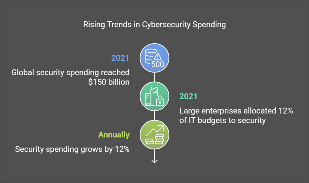 The difference between professional football teams and weekend warriors isn’t just skill—it’s strategy. Elite teams meticulously craft formations, analyze opponent tendencies, and develop sophisticated game plans. Similarly, enterprise cybersecurity only resembles amateur efforts on the surface. Where small businesses might implement basic security to “check a box,” Fortune 1000 companies invest significantly in security strategies tailored to their threat landscape. According to Gartner, global security spending reached $150 billion in 2021, with large enterprises allocating an average of 12% of their IT budgets to security—a figure that continues to grow by approximately 12% annually.