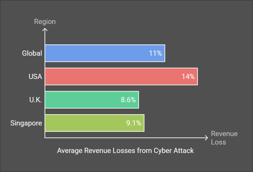With a flamboyant client list including the US Department of Homeland Security, MasterCard, Subaru, Ernst and Young, New York times, this story grabbed the headlines and for good reasons. These industry titans reported the fallout from the attack. The financial hemorrhage that followed was staggering. Companies watched helplessly as the attack devoured, on average, 11% of their annual revenue – a number that tells only part of the story. American companies bore the heaviest burden, losing an average of 14% of their yearly earnings. Their counterparts across the pond fared slightly better, with U.K. businesses taking an 8.6% hit, while companies in Singapore grappled with losses of 9.1%. These weren’t just numbers on a spreadsheet; they represented shattered investor confidence, lost business opportunities, and millions spent on emergency security measures.