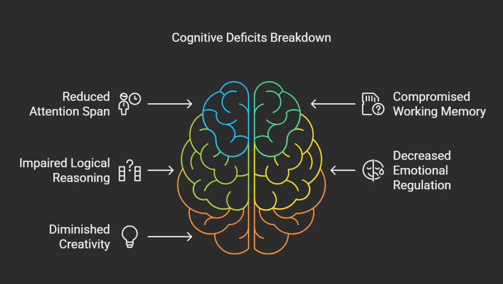 These neurological changes aren’t merely theoretical—they manifest in measurable cognitive deficits, including: